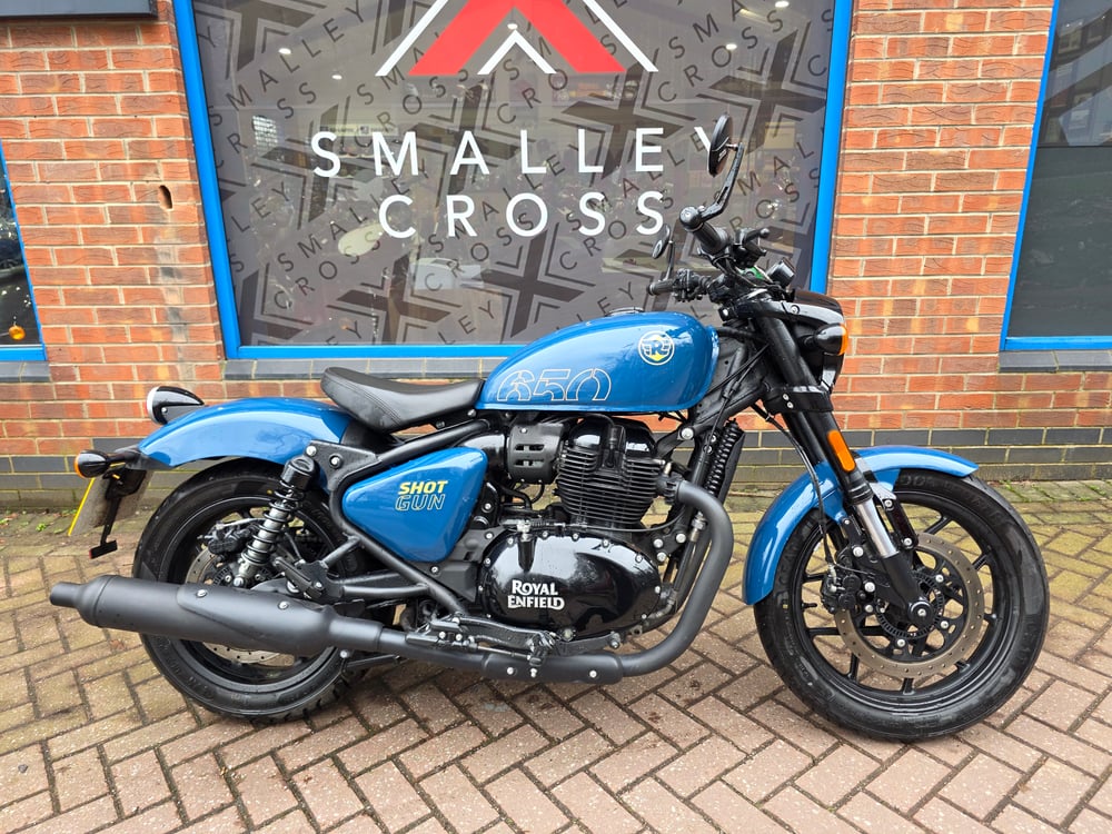 UNDERGOING PREP - MORE PHOTOS TO FOLLOW - Royal Enfield Shotgun 650 in Plasma Blue, Clean Condition, 1 Owner from New, Fitted with Genuine RE Bar End Mirrors, Remaining Warranty until 2027